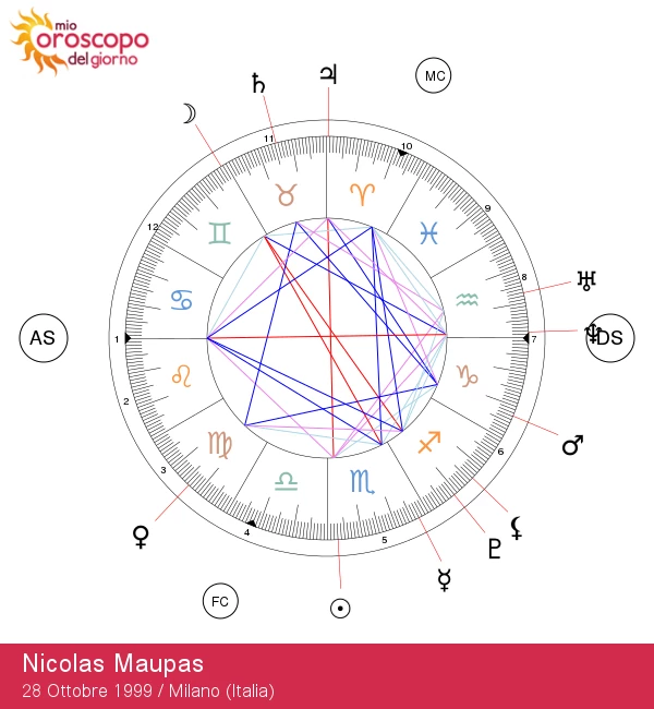 Nicolas Maupas, nato il 28 ottobre 1999, ha un ascendente in Cancro, il che gli conferisce uno spirito immaginativo e ricettivo. La sua natura riservata e cauta è fortemente influenzata dalla dinamica familiare nelle sue relazioni. Nicolas possiede un temperamento simpatico, ospitale e premuroso. Sente una connessione nostalgica con il passato, che dovrebbe imparare a lasciar andare. Affettuoso ed emotivo, fiorisce in un ambiente domestico amorevole ed è un confidente prezioso. I suoi cambiamenti d'umore possono sorprendere gli altri e ha una memoria incredibile, spesso intrecciando storie dalle sue esperienze.